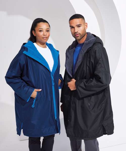 TriDri’s latest outerwear is essential in everyone’s wardrobe! The TriDri® All-seasons waterproof changing robe boasts a waterproof exterior with hood to keep you dry, as well as adjustable straps to the wrists and chin guard to help lock in heat on windy days. The cosy sherpa fleece interior absorbs moisture and keeps you warm, making it a great choice after water activities or rainy days on the football pitch. Designed to be oversized, the jacket is ideal for changing into warm, dry clothes, offering a double zip – so more room to move! Featuring multiple deep pockets, inside and out, it’s not just for athletes, but perfect for rainy commutes or frosty walks with the dog.